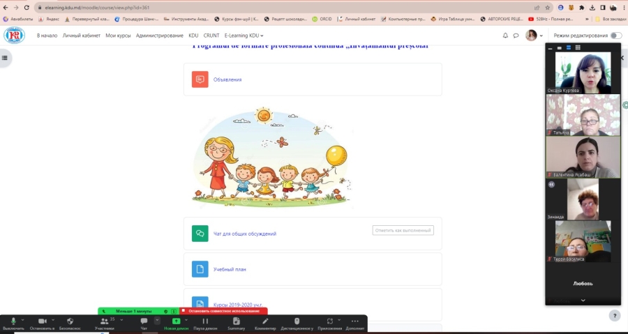 На кафедре педагогики и психологии, Центром непрерывного образования были организованы очередные курсы непрерывного образования дидактических кадров поп программе «0112.1 Pedagogie preșcolară». Курсы были запущены 27.11.2023 г.. Деканом Факультета Национальной Культуры была проведена организационная встреча, где были обозначены вопросы относительно содержания учебных Модулей, особенности взаимодействия в режиме онлайн (используемые цифровые ресурсы и платформы), организационные вопросы, связанные с оформлением документации. Также педагогам был представлен курс Programul de formare profesională continuă „Învățământul preșcolar”, размещённый на платформе MOODLE Комратского госуниверситета.
