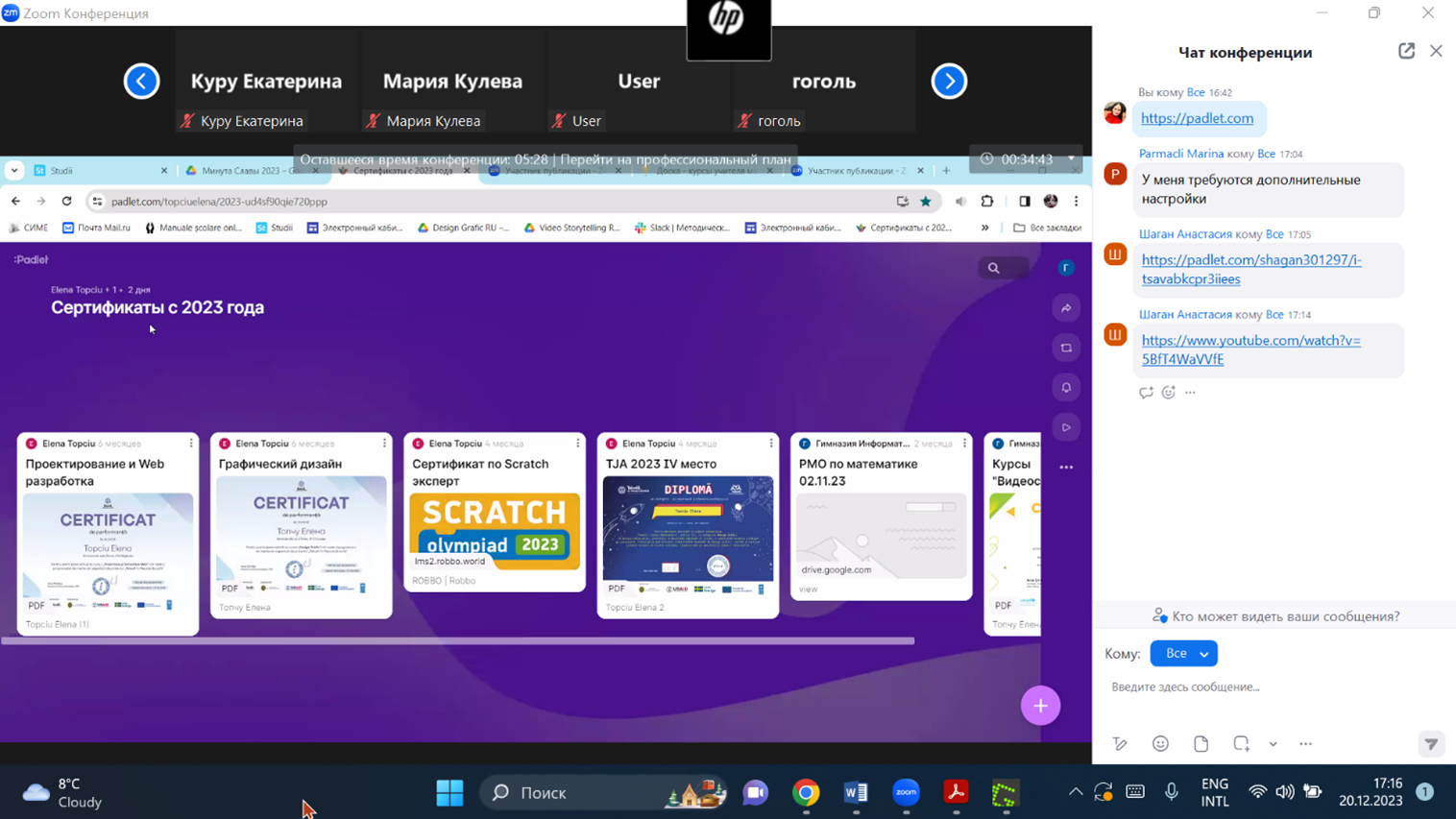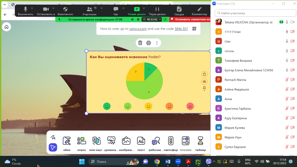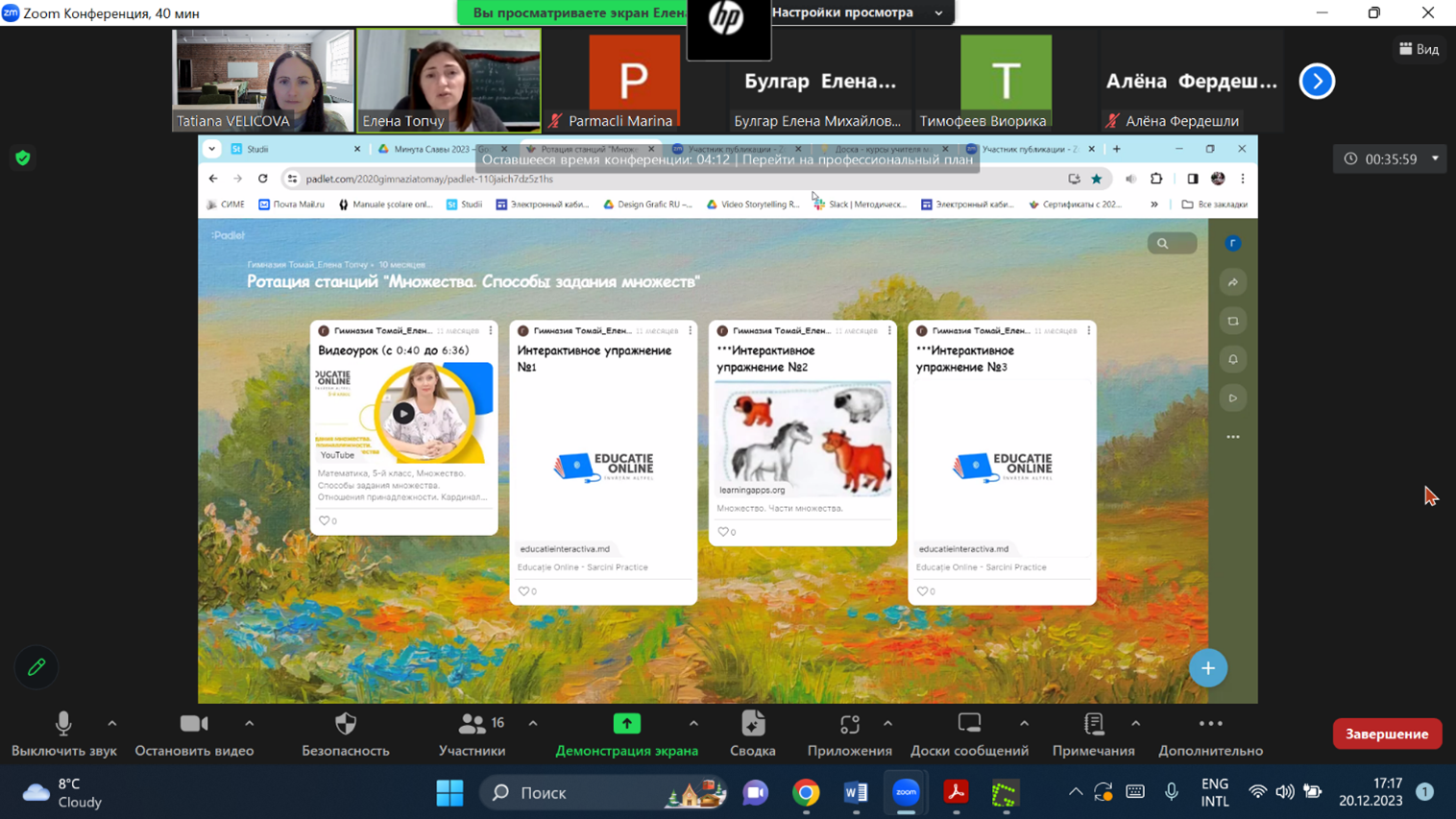 На курсах слушателям курсов были предложены различные формы совместного взаимодействия учащихся посредством онлайн сервисов. Для того, чтобы понять, как это работает на практике, слушатели курсов были вовлечены в процесс формирования совместного задания в Tricider «Обсуждение тем проектных работ по математике», вызвал интерес и онлайн сервис Storyjumper, в котором совместно сформировали электронную книжку, а также сервис Сanva c широким функционалом для организации коллаборативной работы. В classroomscreen cоздали опрос и показали, как можно организовать рефлексию с учащимися. Были продемонстрированы практические примеры разработки образовательного контента в Genialy, Padlet, Geogebra, Ahaslides, SliDo и др. В рамках модуля D был сделан анализ MOOC курсов по математике на платформе