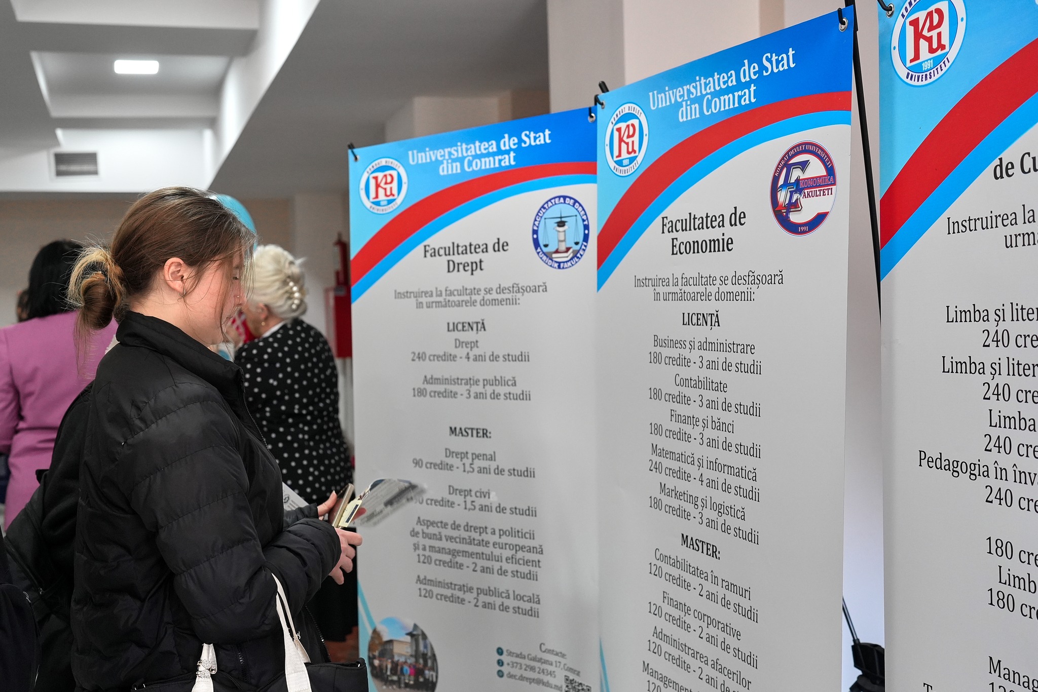 Представители КГУ представили абитуриентам и гостям мероприятия образовательные программы по более чем 30 специальностям на 4 факультетах, раскрыли возможности академической и профессиональной подготовки, направления непрерывного обучения, реализуемые Secția de formare continuă și dezvoltarea carierei.