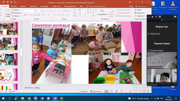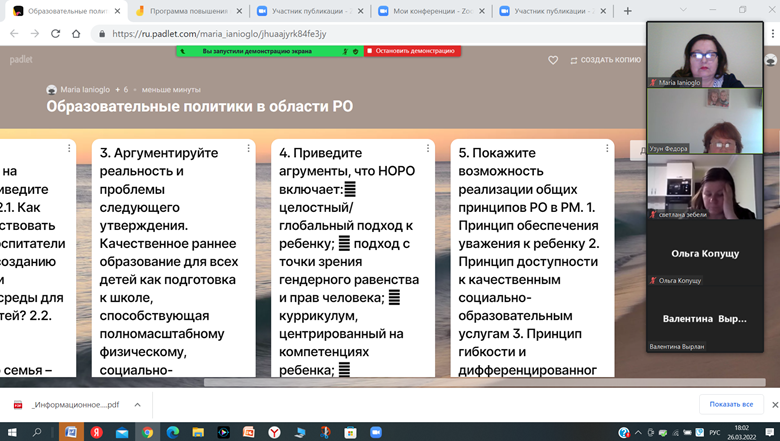Важно отметить рабочий настрой педагогов, желание развиваться и пополнять свои профессиональные компетенции. Педагоги проявляли позитивную активность в процессе работы на занятиях, с радостью делились своими идеями. Курсы дают возможность обмениваться опытом и связывать его с прогрессивными идеями в педагогике, психологии, частной дидактике. Обсуждение вопросов партнерства с родителями воспитанников, стало актуальной дискуссией в группе. Говорили о важности взаимоуважения и признания права семьи на выбор воспитательных стратегий. А так же о важности предоставления качественной психолого-педагогической поддержки для семей воспитанников.