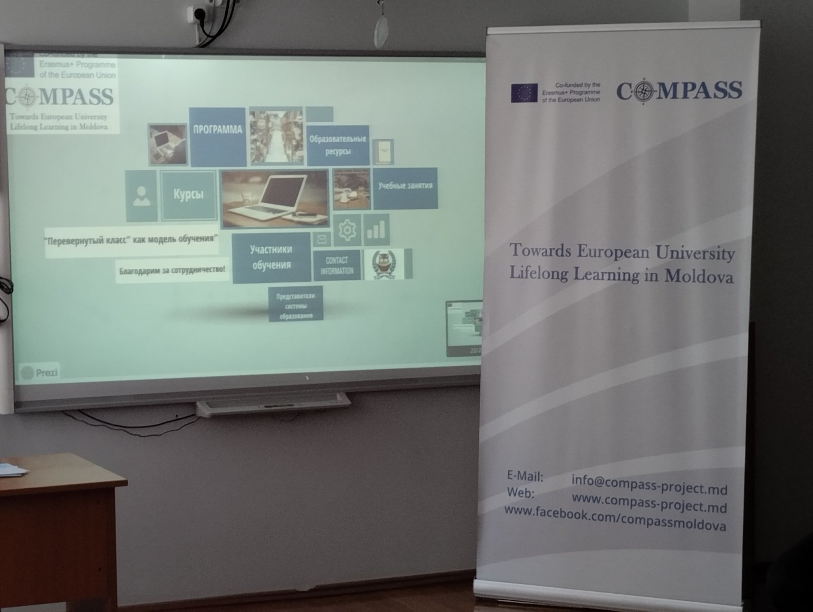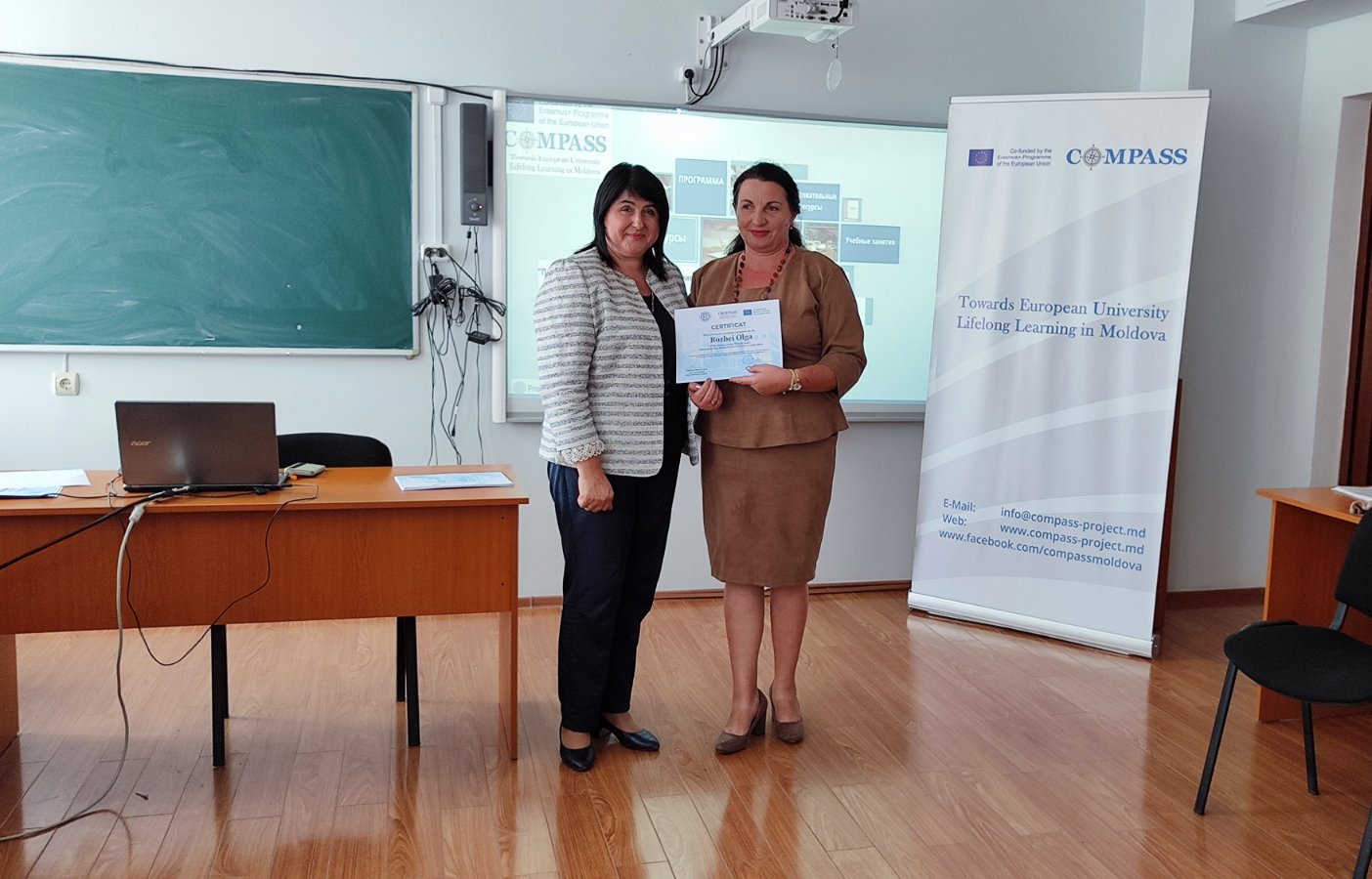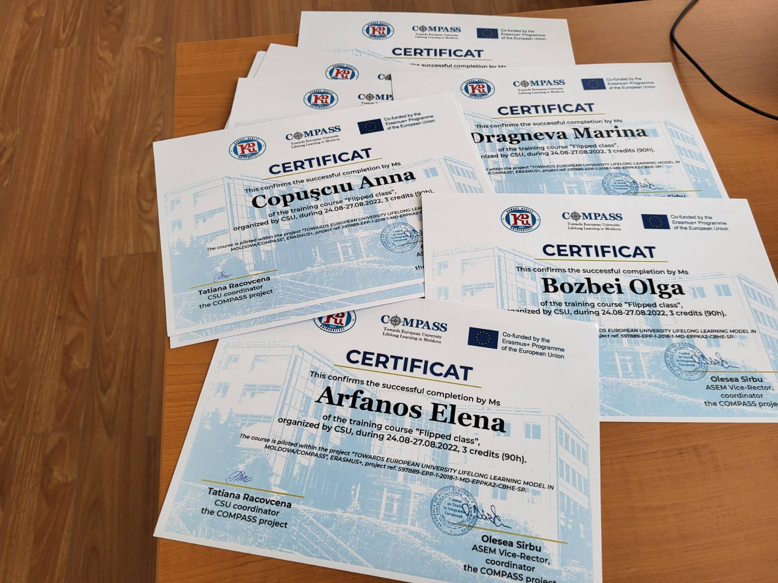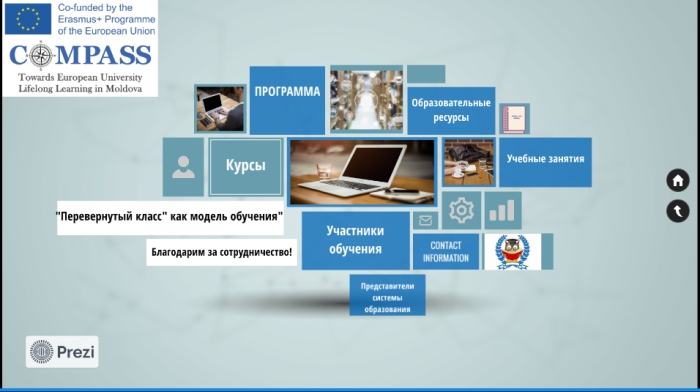 10 сентября 2022 в результате завершения курсов непрерывного образования в рамках реализации плана международного проекта TOWARDS EUROPEAN UNIVERSITY LIFELONG LEARNING MODEL IN MOLDOVA”- COMPASS, 597889-EPP-1-2018-1-MD-EPPKA2-CBHE-SP, ERASMUS + выпускникам программы «Перевернутый класс» как модель обучения» были вручены сертификаты. Данная программа была реализована в период с 24.08.2022 по 27.08.2022 и ориентирована на педагогов высшей школы, колледжей, доуниверситетских образовательных учреждений и других категорий дидактических кадров, желающих повысить свой профессиональный уровень.